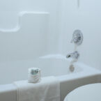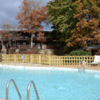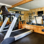 The Fitness Center has five work stations, floor to ceiling mirrored wall, and beautiful pine plank paneling.